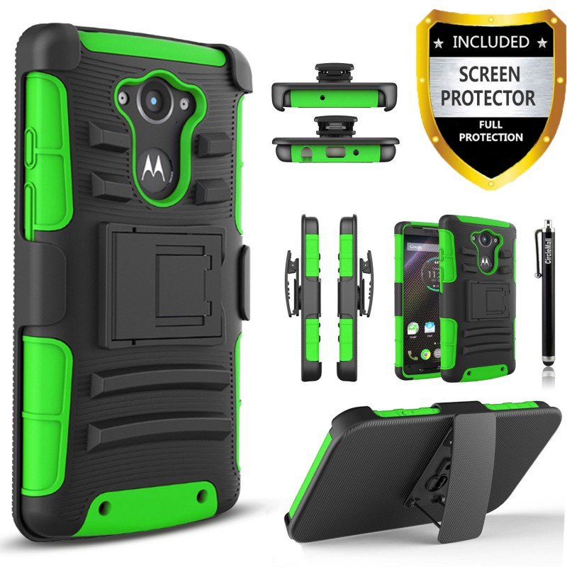 Motorola Droid Turbo Case, Dual Layers [Combo Holster] Case And Built-In Kickstand Bundled with [Premium Screen Protector] Hybird Shockproof And Circlemalls Stylus Pen (Green)