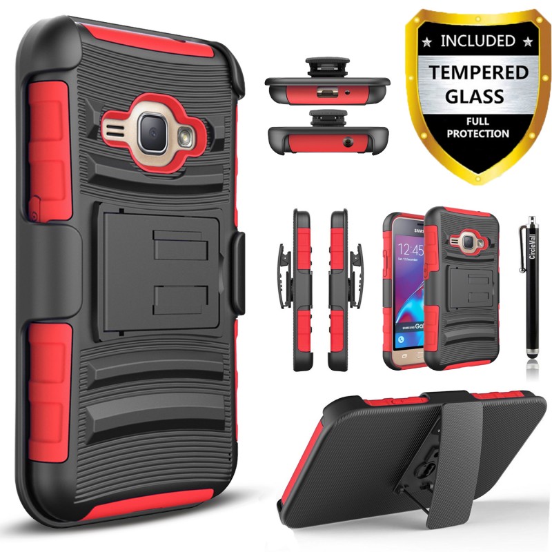 Samsung Galaxy Grand Prime, Samsung Go Prime, Galaxy J2 Prime Case, Dual Layers [Combo Holster] Case And Built-In Kickstand Bundled with [Premium Screen Protector] Hybird Shockproof And Circlemalls Stylus Pen (Red)