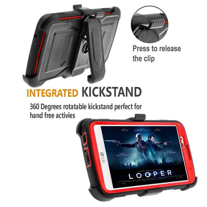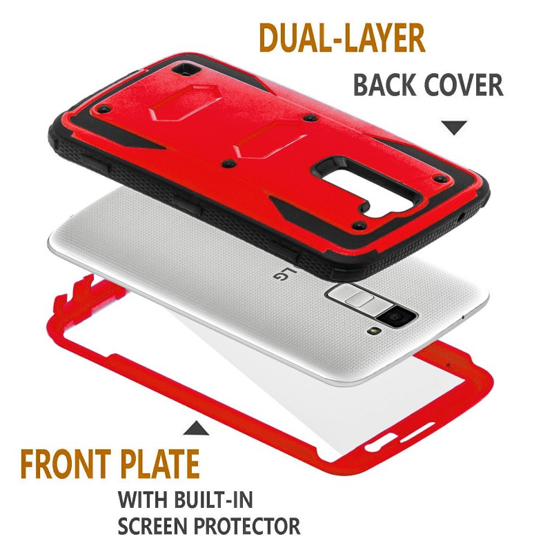 LG K10, LG Premier LTE Case, [SUPER GUARD] Dual Layer Protection With [Built-in Screen Protector] Holster Locking Belt Clip+Circle(TM) Stylus Touch Screen Pen (Red)