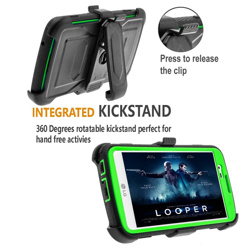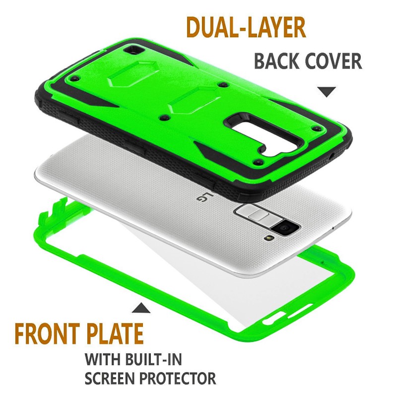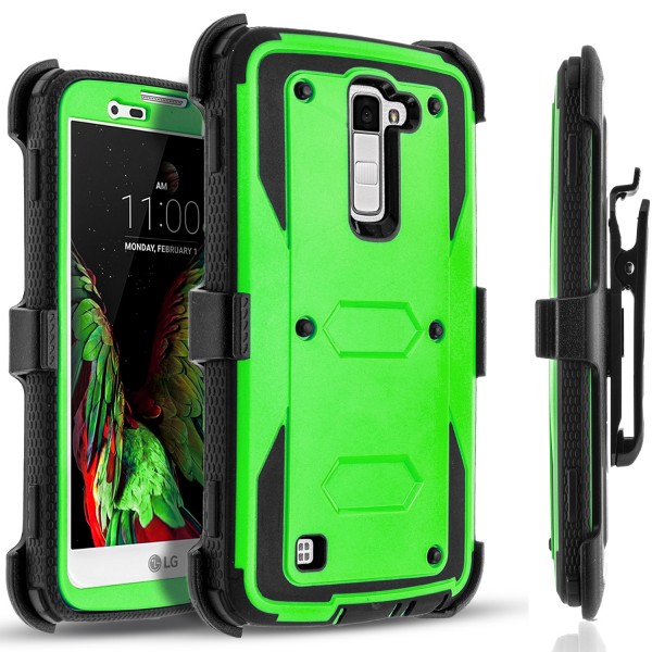 LG K10, LG Premier LTE Case, [SUPER GUARD] Dual Layer Protection With [Built-in Screen Protector] Holster Locking Belt Clip+Circle(TM) Stylus Touch Screen Pen (Green)