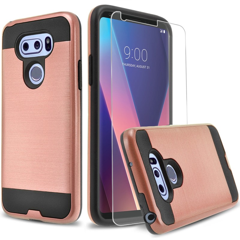 LG V30 Case, 2-Piece Style Hybrid Shockproof Hard Case Cover with [Premium Screen Protector] Hybird Shockproof And Circlemalls Stylus Pen (Rose Gold)